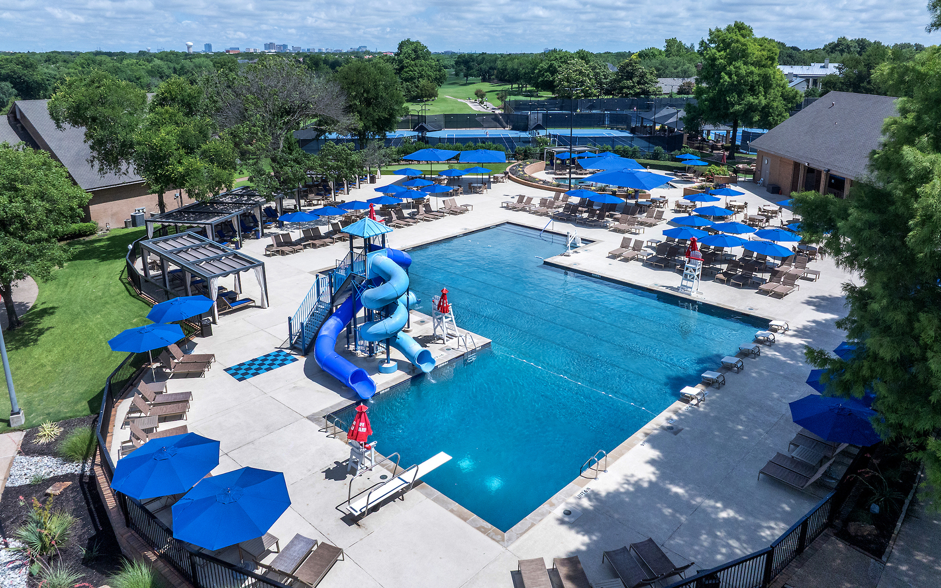Our two pools at the main clubhouse offer dedicated Olympic swim lanes and a family leisure pool with a big slide!